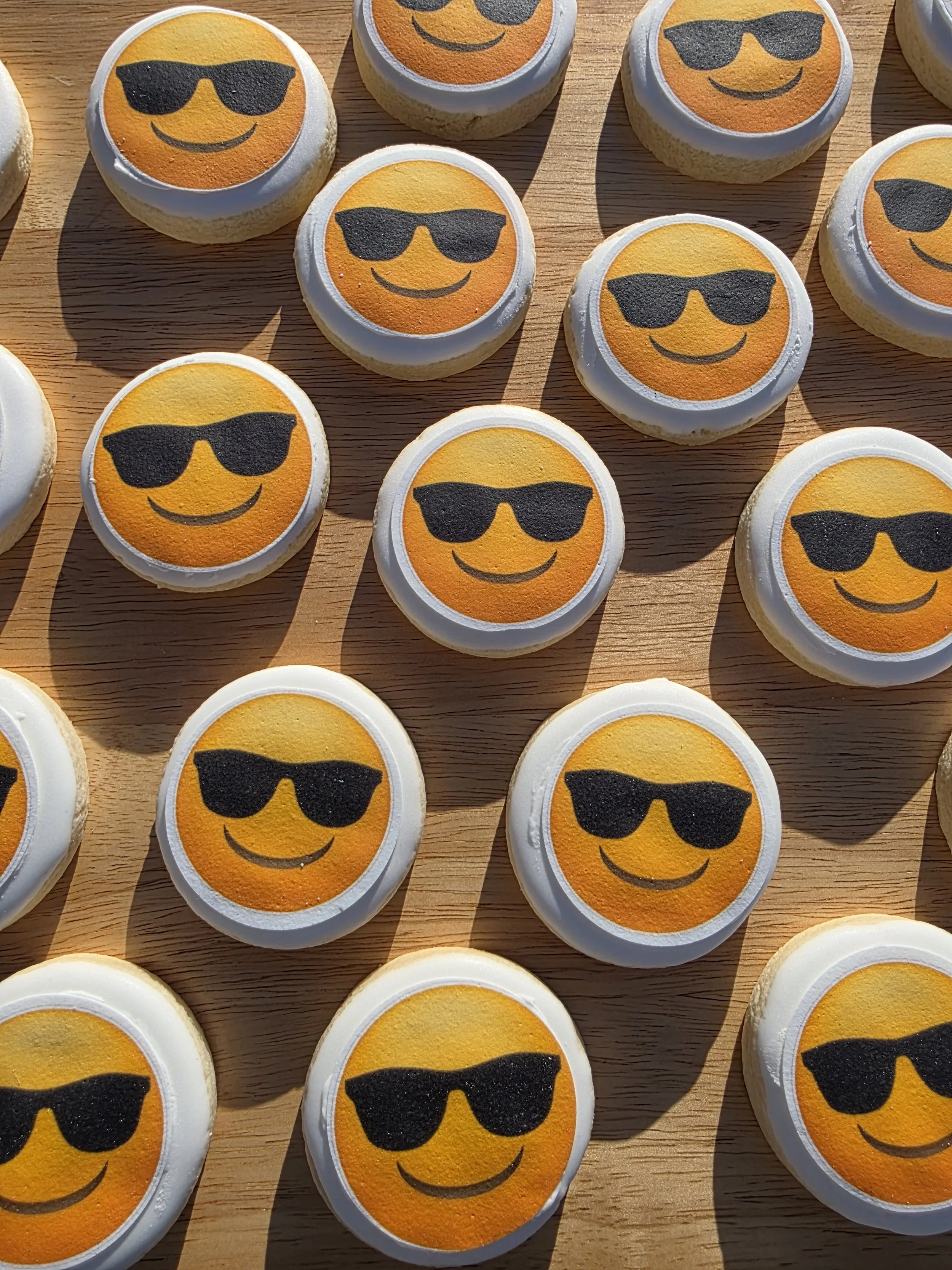 2 inch mini cookies topped with one professionally printed 2 inch edible image per cookie.